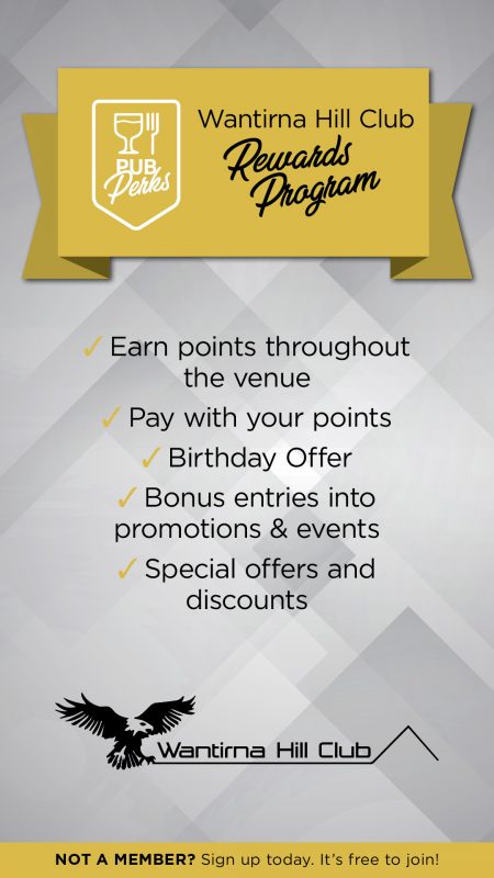 Membership at the Wantirna Hill Club has its benefits. You can enjoy plenty of rewards, bonus points and special offers every time you visit. Simply swipe your card at any register when you make your first purchase to start earning points. Your points can be redeemed for in venue rewards such as meals, drinks and vouchers.